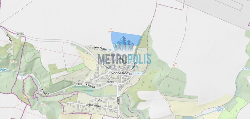 Vodochody, okres Praha-východ. Pozemek se nachází na katastrálním území