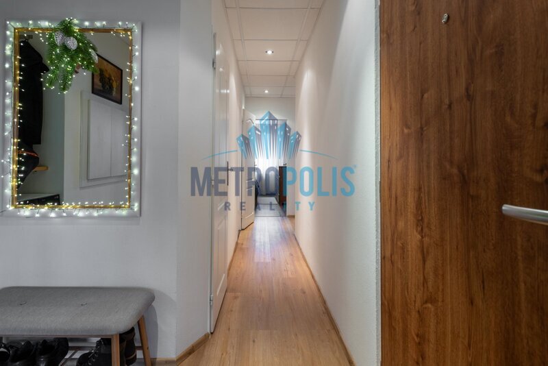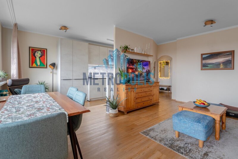 Byt nabízí příjemně oddělenou denní a klidovou část. Obývací pokoj je